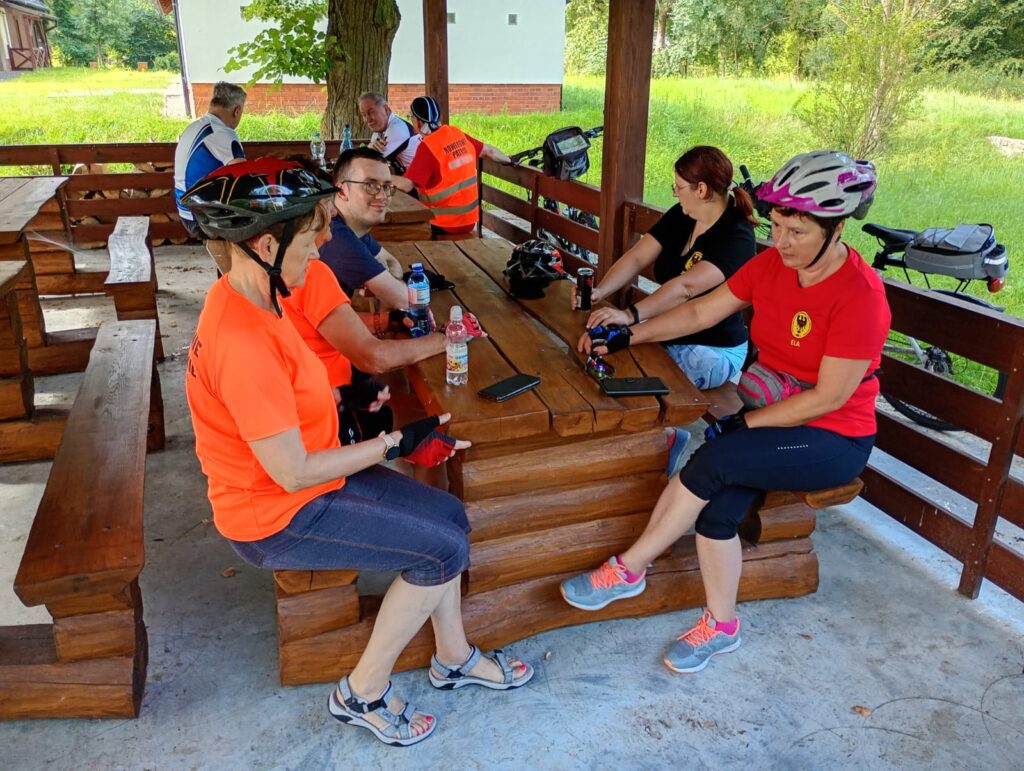 Przed wyruszeniem na rajdową trasę uczestnicy wrzucili do stowarzyszeniowej puszki datki w kwocie 300 zł. Kwotę tę przeznaczymy na wsparcie akcji charytatywnej, prowadzonej na rzecz pani Barbary Komarnickiej z Kamiennej, żony i szwagierki naszych stowarzyszeniowych kolegów. Łącznie, podczas dwóch weekendowych wydarzeń – rajdu rowerowego i spaceru miejskiego, zebraliśmy na ten szczytny cel 900 zł.