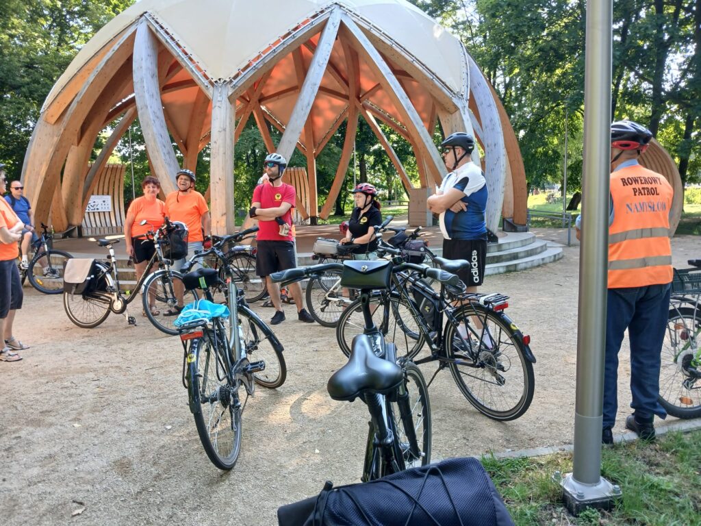 Zbiórka uczestników odbyła się o godzinie 9:00 w jednym ze stałych miejsc startów naszych wycieczek rowerowych. Mowa tu o okazałym dębie, rosnącym na terenie namysłowskiego placu pod Grzybkiem.
