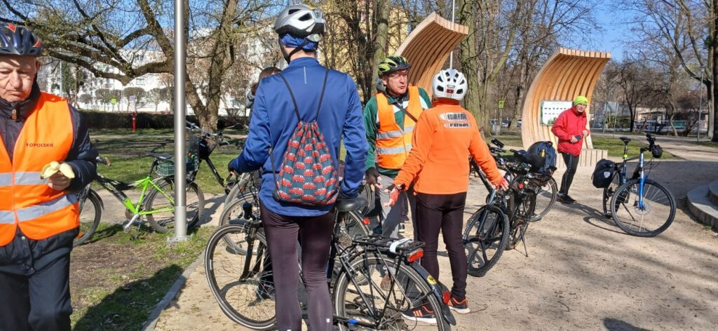 Na kolarskie szlaki powróciliśmy po zimowej przerwie, która tym razem trwała dokładnie 147 dni. Punktem zbiórki uczestników rajdu był tym razem namysłowski Plac Pod Grzybkiem. Po wręczeniu rowerzystom słodkich upominków, a także po krótkim omówieniu specyfiki trasy, chwilę po godzinie 10:00 wyruszyliśmy w drogę.