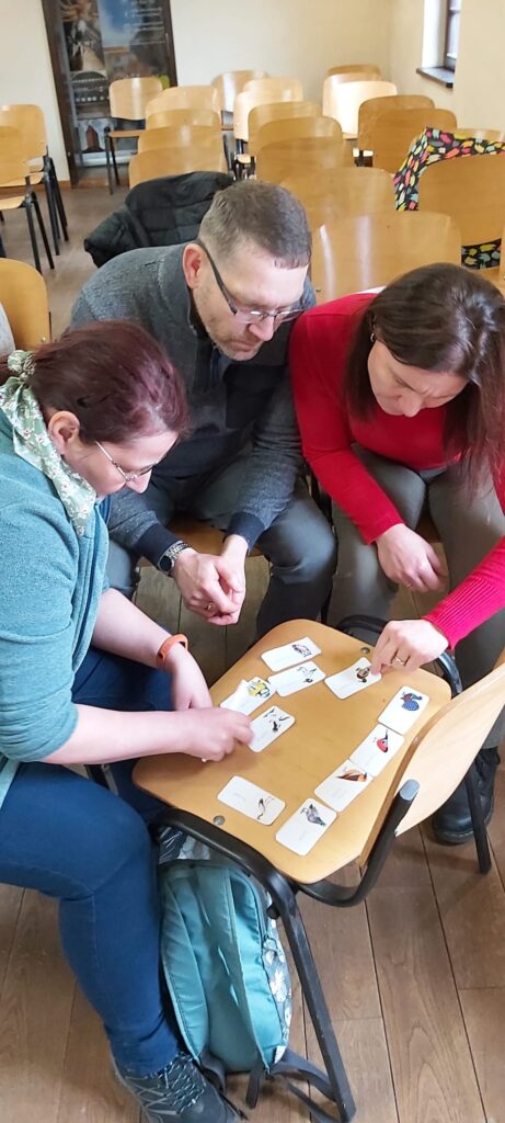 Po części wykładowej uczestnicy wydarzenia zmierzyli się z kilkoma zadaniami przygotowanymi przez prowadzących. W trzyosobowych drużynach wspólnie rozwiązywano krzyżówkę, uzupełniano dialog między puchaczem i grubodziobem, układano również ptasie domino. Serdecznie dziękujemy uczestnikom za miło spędzony czas we wczesne niedzielne popołudnie! Spośród członków TPNiZN udział w wydarzeniu wzięli: prowadzący Beata Bronkowska i Mateusz Magda, a także koleżanki Ewa Adamska, Jolanta Król, Elżbieta Magda i Lidia Mizera.
