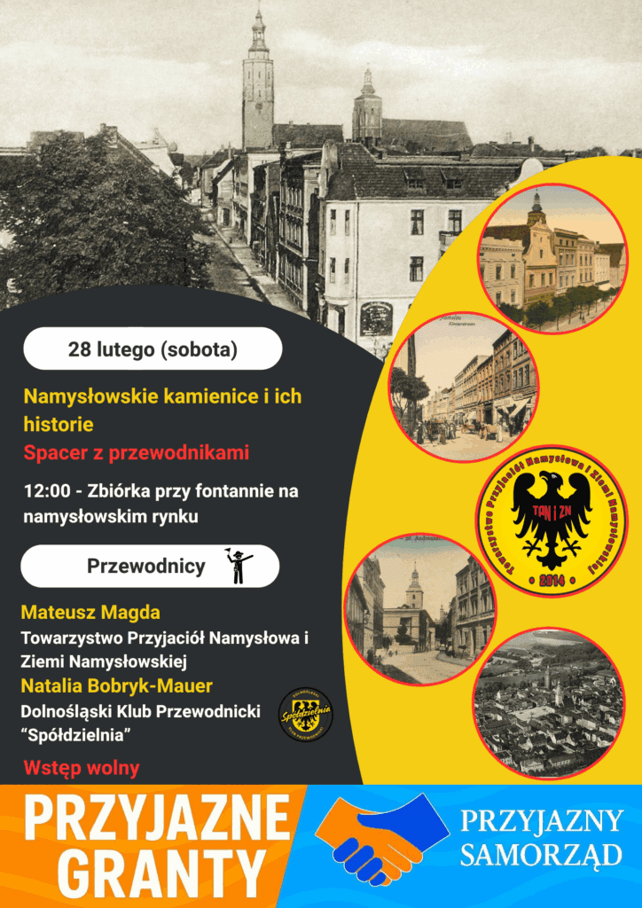 Mamy nadzieję, że taka forma naszej aktywności przypadła Wam do gustu. Już najbliższą sobotę – 28 lutego, zapraszamy na kolejne wydarzenie, tym razem wycieczkę Namysłowskie kamienice i ich historie. Spacer z przewodnikami. Razem z Mateuszem Magdą poprowadzi ją również Natalia Bobryk-Mauer z Dolnośląskiego Klubu Przewodnickiego „Spółdzielnia”. Mamy nadzieję, że tym razem warunki atmosferyczne pozwolą nam pospacerować uliczkami miejskiej starówki. Z kolei na marzec zaplanowaliśmy przyrodniczą wycieczkę po zabytkowym parku w Pokoju, a także rozpoczęcie naszego sezonu rowerowego.